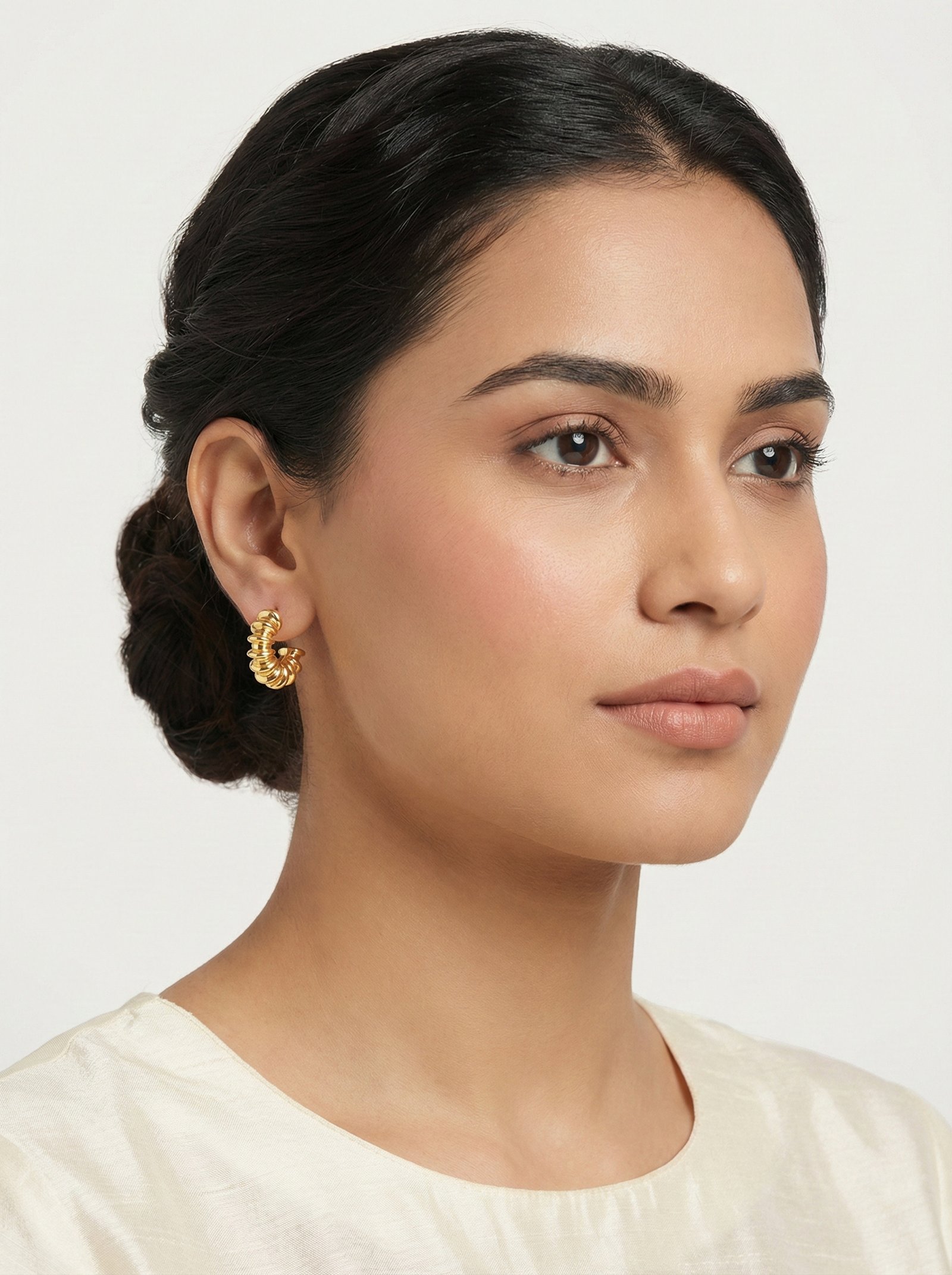 Elegant Gold Plated Textured Hoop Earrings for Women | Minimal Designer Stud Hoops