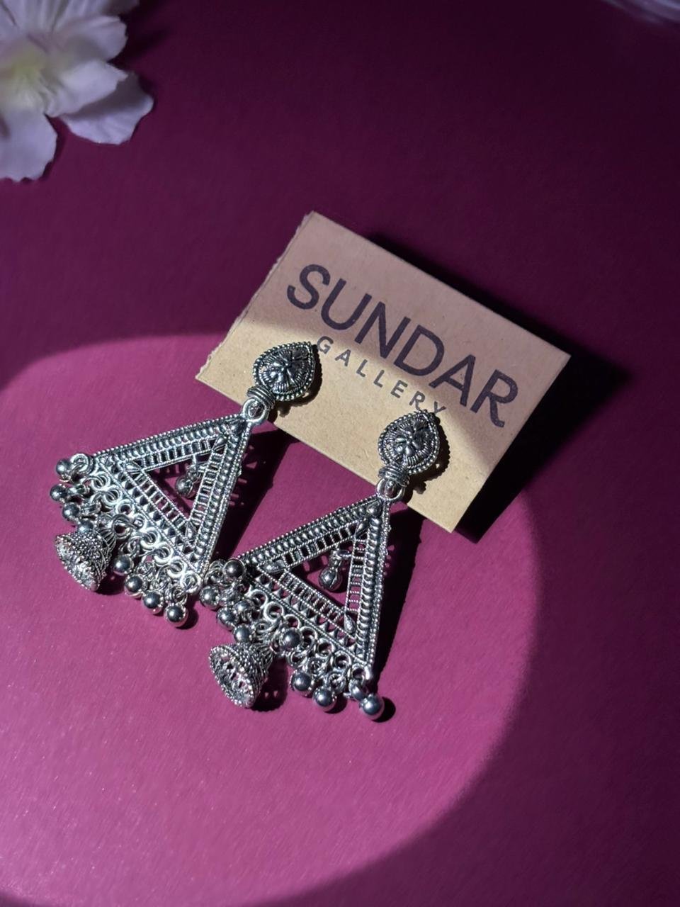 Oxidized Silver Tribal Triangle Jhumka Earrings for Women